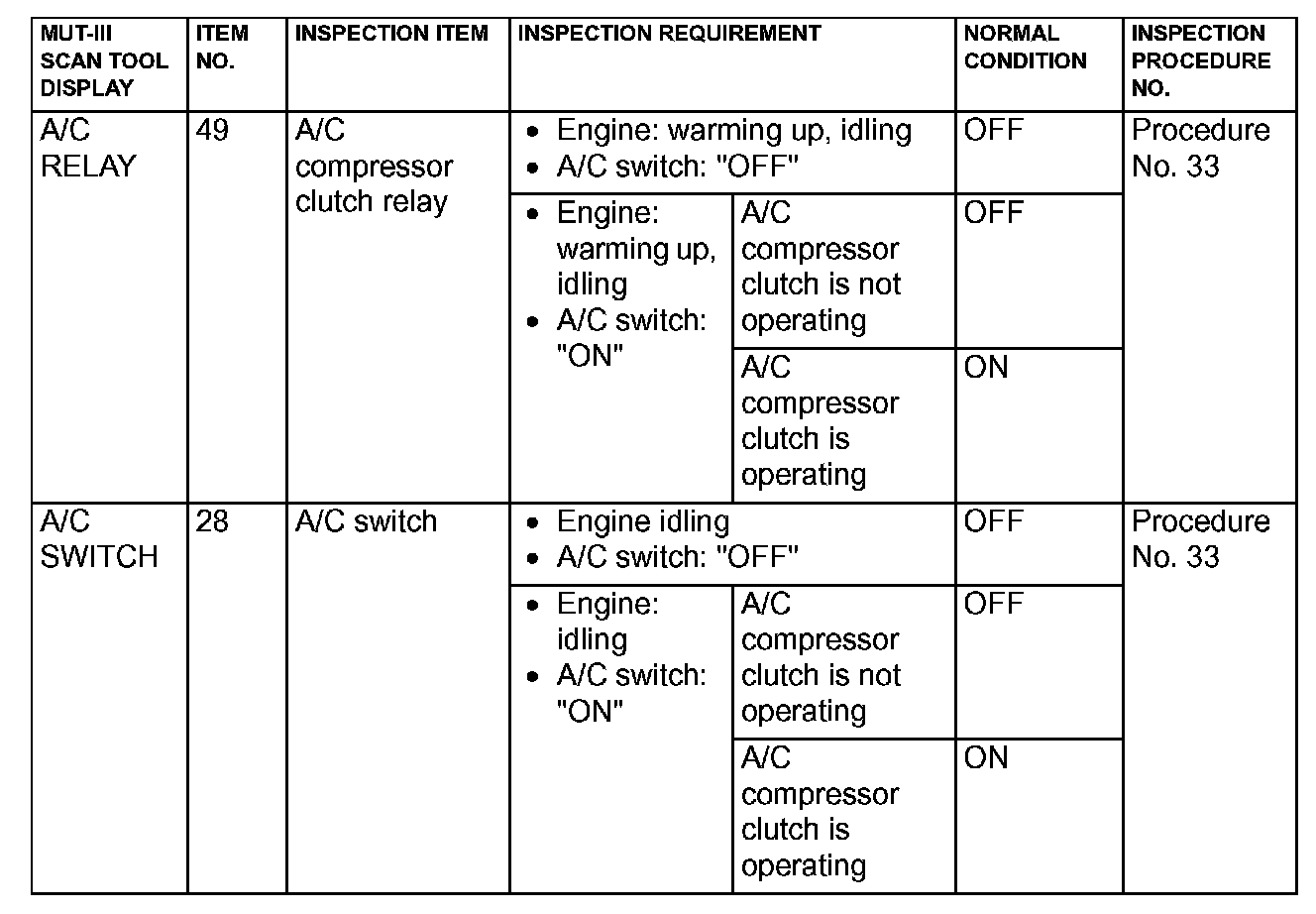 Data List Reference Table & Normal Scan Data Values