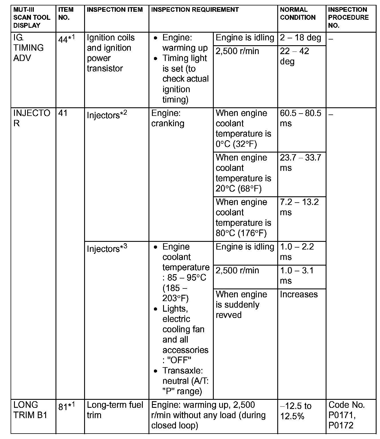 NOTE: *3: In a new vehicle [driven approximately 500 km (311 mile) or less], the injector drive time is sometimes 10% longer than the standard time.