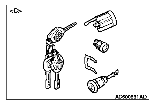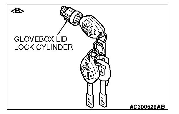 - Do not register the ignition keys other than the ignition key that starts the engine. (When replacing by the door lock key cylinder of illustration or the glove box lid lock cylinder of illustration , the engine cannot start if the encrypted code is registered with the bar code on the ignition key supplied simultaneously. If the ignition key using for each lock cylinder and starting engine is used as a common ignition key, replace by the key set of illustration