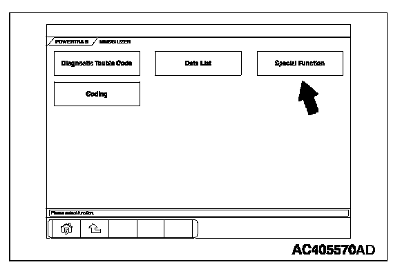 ENCRYPTED CODE REGISTRATION USING BARCODE NO.When the ignition key that starts the engine is replaced due to the replacement of the ignition key set, the ignition key cylinder, etc., the barcode No. must be used to register encrypted codes.