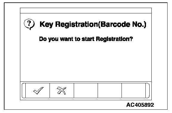 9. When the execution confirmation menu of the key registration (Barcode No.) is displayed, press the OK button.
