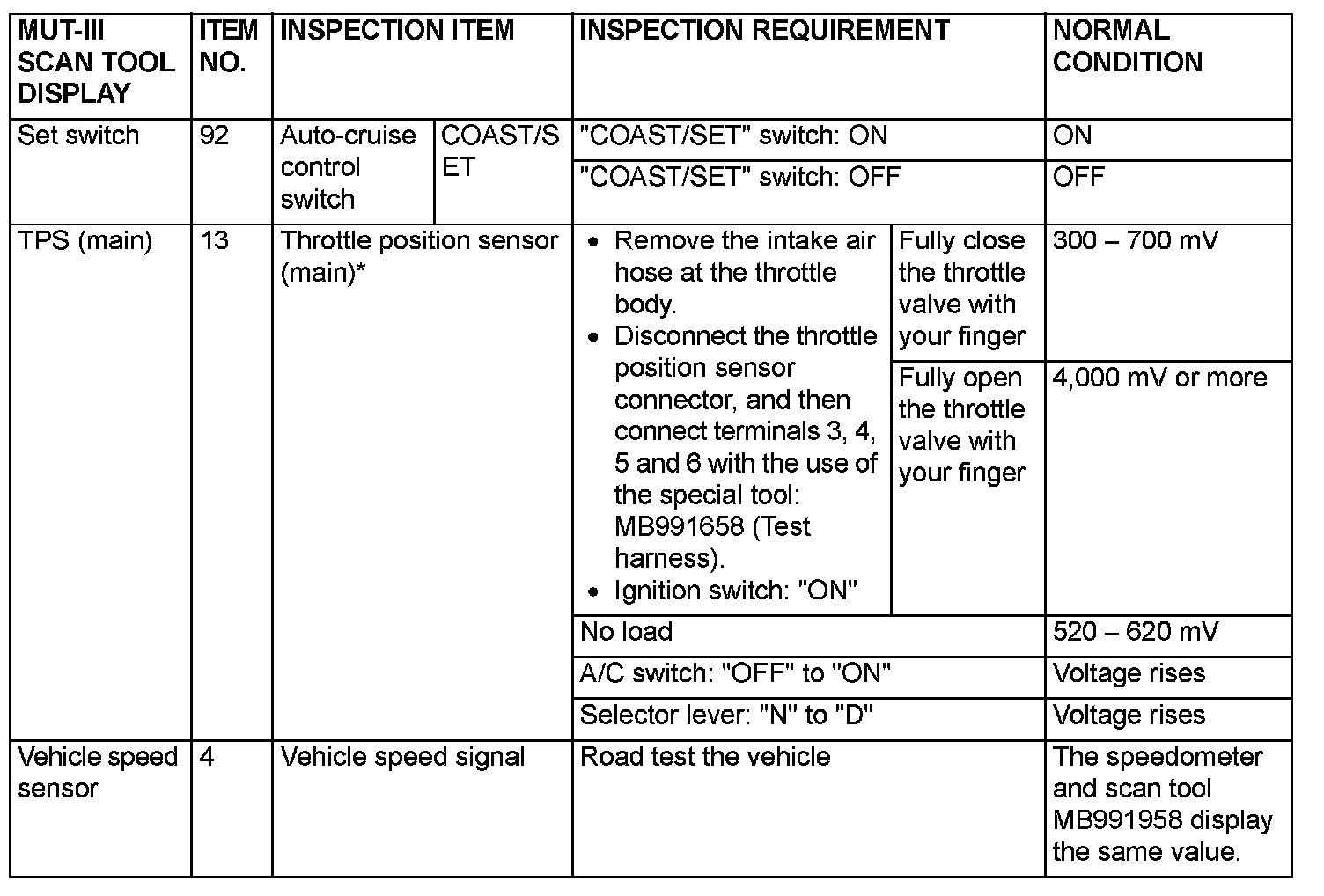 NOTE: *:After the inspection is completed, disconnect the throttle position sensor connector, and then delete the diagnostic trouble code using scan tool MB991958.