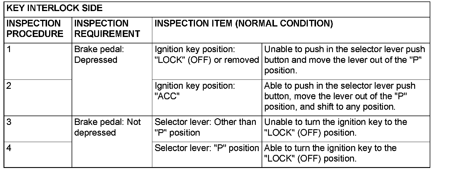 KEY INTERLOCK AND SHIFT LOCK MECHANISM CHECK