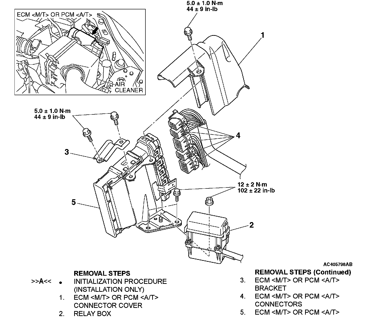 Home >> Mitsubishi >> 2006 >> Eclipse L4-2.4L (4G69) >> Repair and Diagnosis >> Relays and Modules >> Relays and Modules - Powertrain Management >> Relays and Modules - Computers and Control Systems >> Engine Control Module >> Service and Repair >> ECM / PCM Removal and Installation