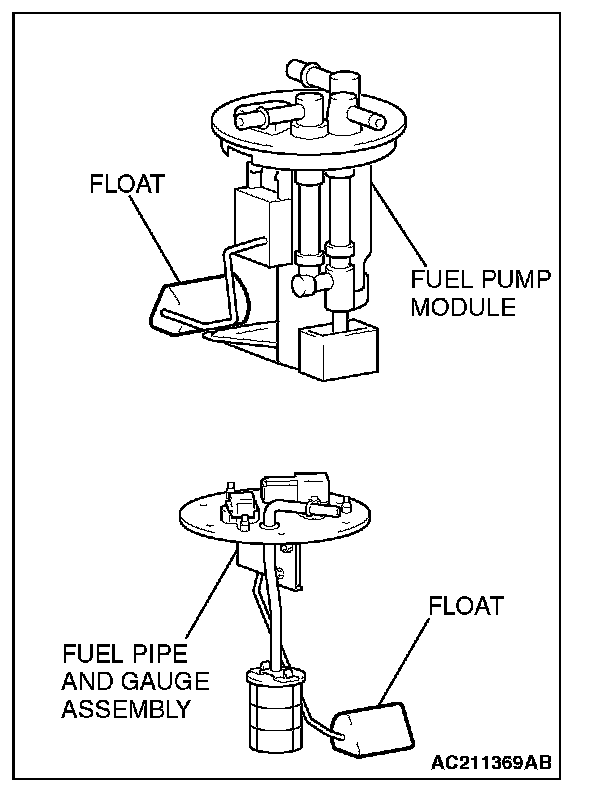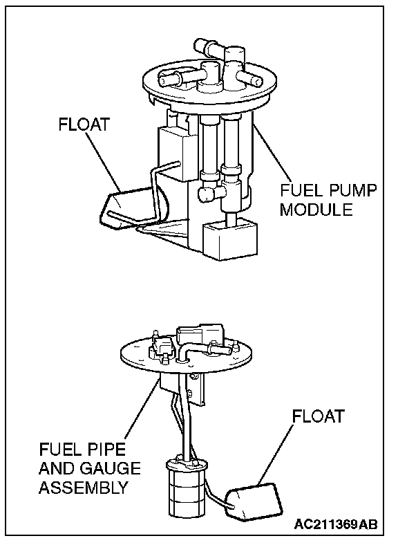 CAUTION: When withdrawing the fuel pump module or fuel pipe and gauge assembly from the fuel tank, be careful not damage the sensor unit and the float.