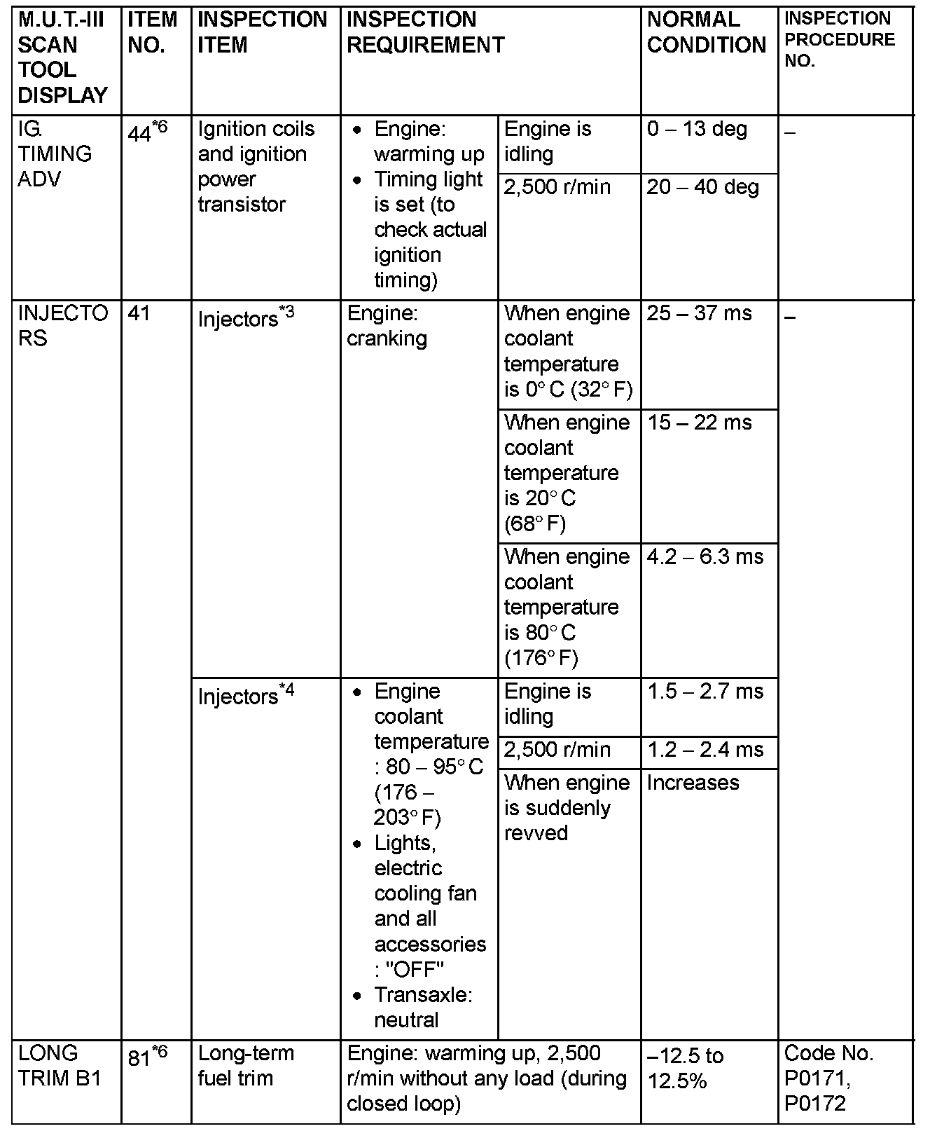 NOTE: *4: In a new vehicle [driven approximately 500 km (311 mile) or less], the injector drive time is sometimes 10% longer than the standard time.