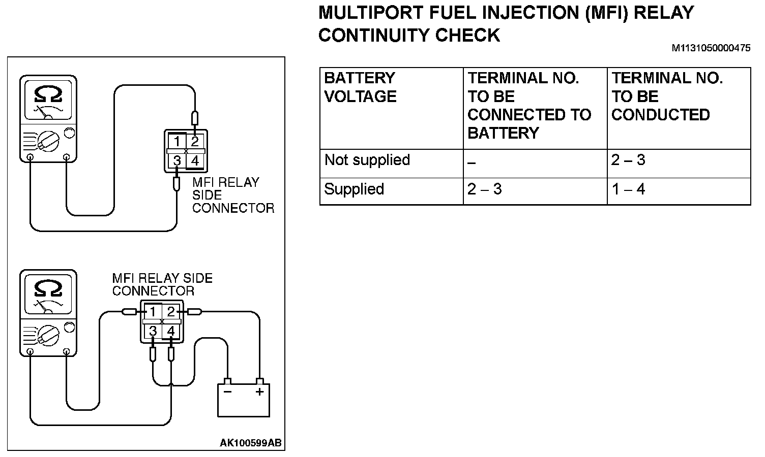 Multiport Fuel Injection (MFI) Relay Continuity Check: