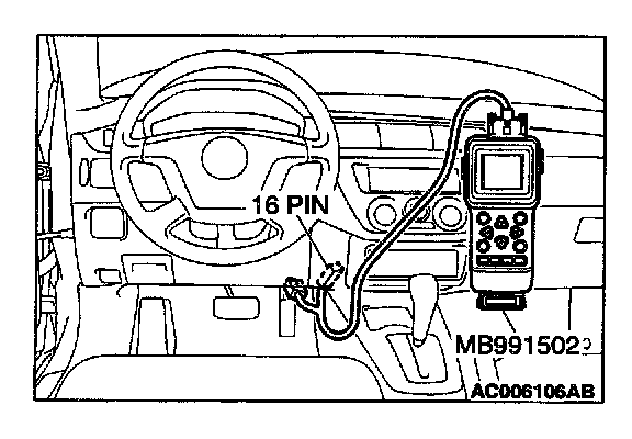 3. Connect scan tool MB991502 to the data link connector terminal 1.