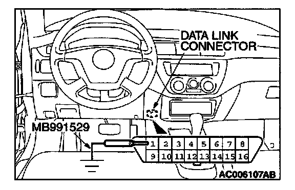 1. Disconnect scan tool MB991502 from the data link connector, or disconnect data link connector terminal 1. form the ground.