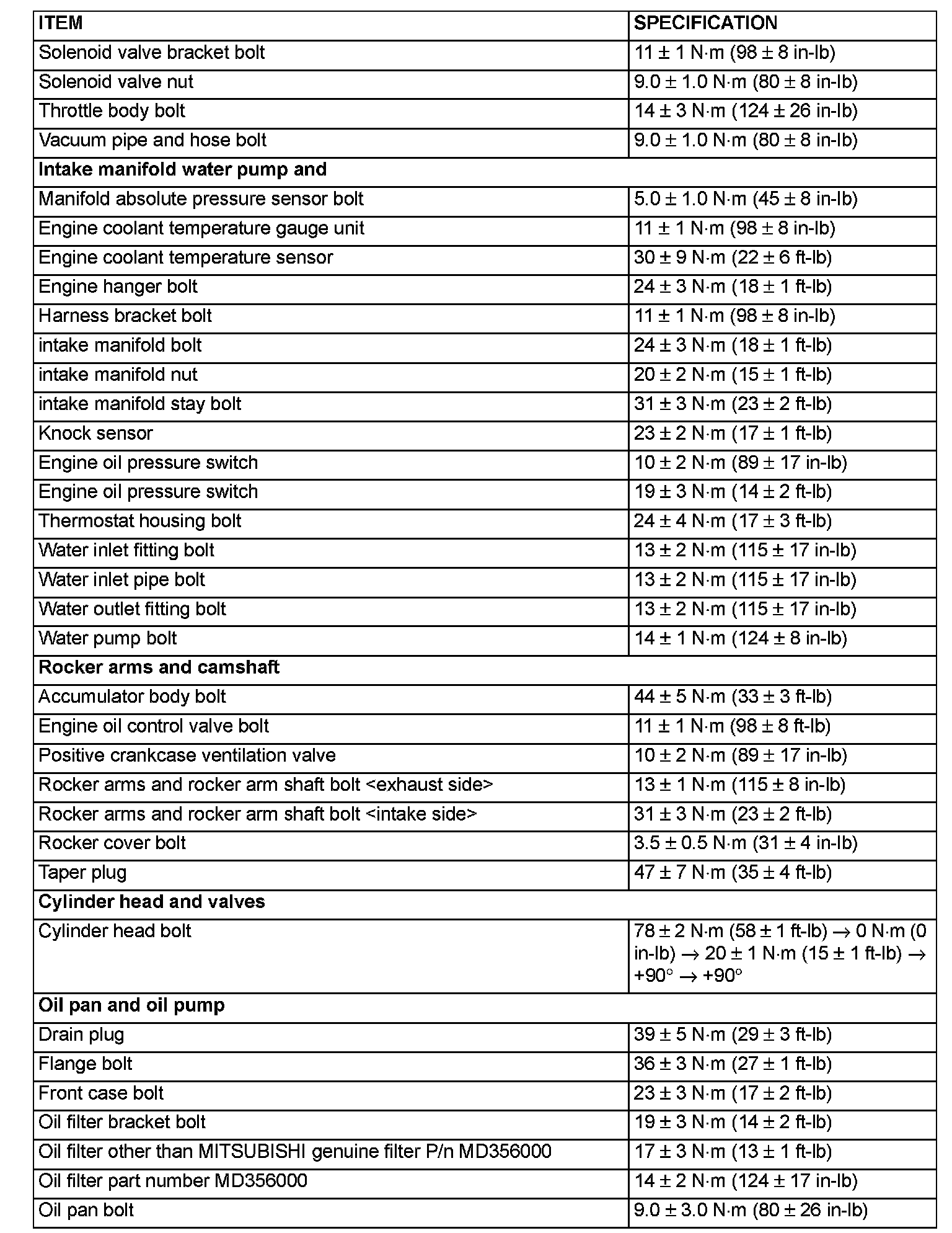 Torque Specifications