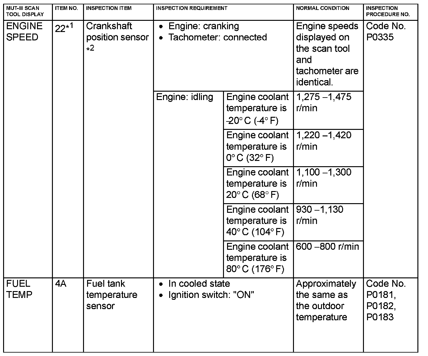 NOTE: *2: The injector drive time represents the time when the cranking speed is at 250 r/min or below when the power supply voltage is 11 volts.