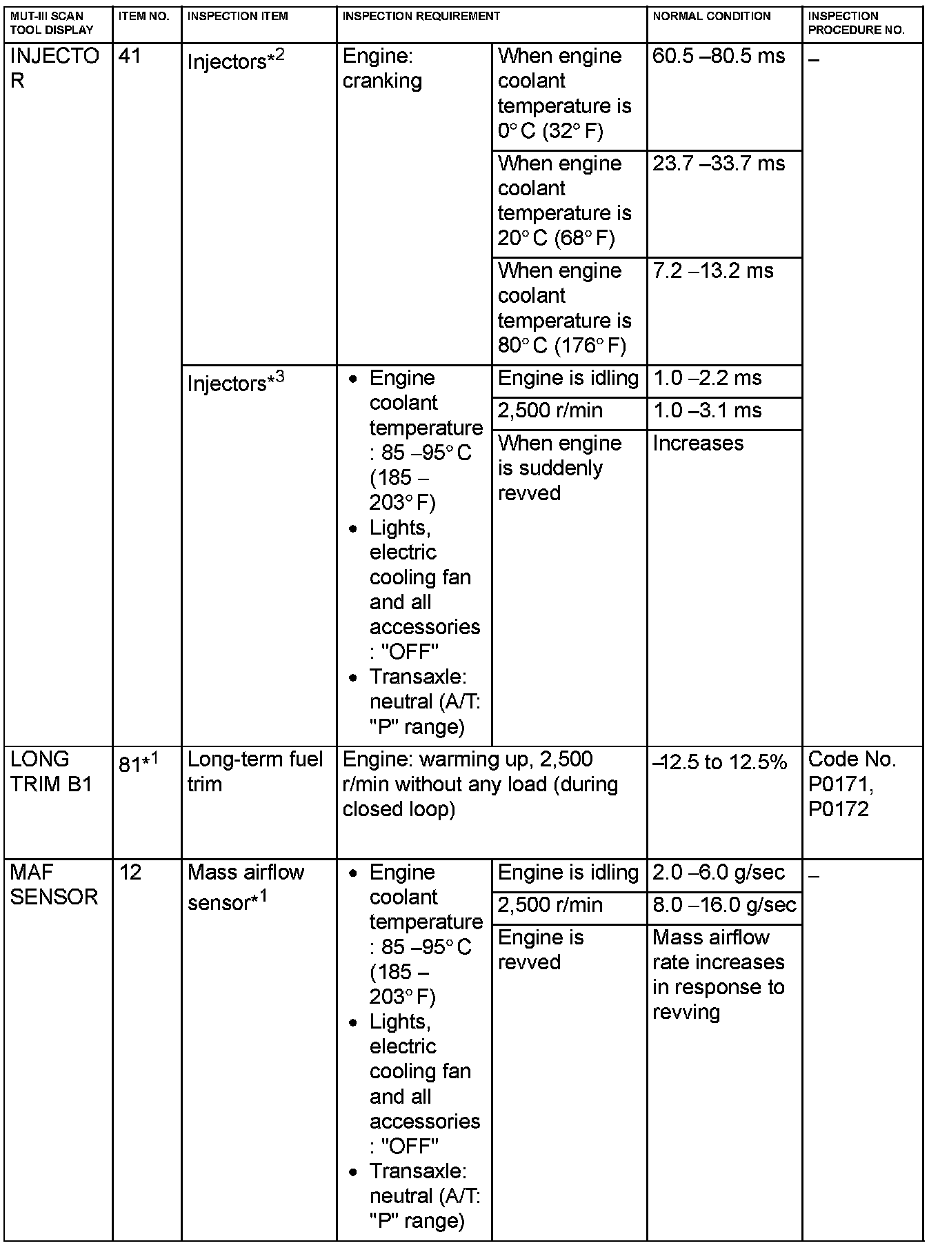 NOTE: *3: In a new vehicle [driven approximately 500 km (311 mile) or less], the injector drive time is sometimes 10% longer than the standard time.