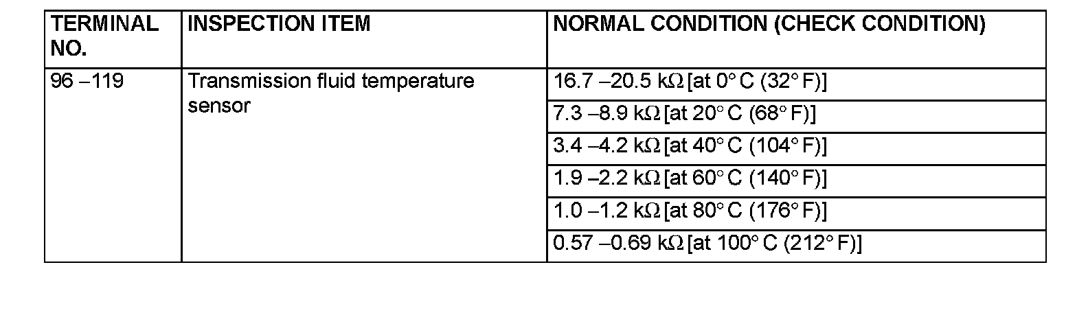 PCM Terminal Resistance and Continuity Inspection Chart