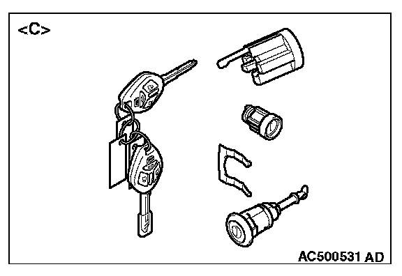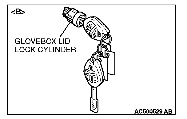 - Do not register the ignition keys other than the ignition key that starts the engine. (When replacing by the door lock key cylinder of illustration or the glove box lid lock cylinder of illustration , the engine cannot start if the encrypted code is registered with the bar code on the ignition key supplied simultaneously. If the ignition key using for each lock cylinder and starting engine is used as a common ignition key, replace by the key set of illustration