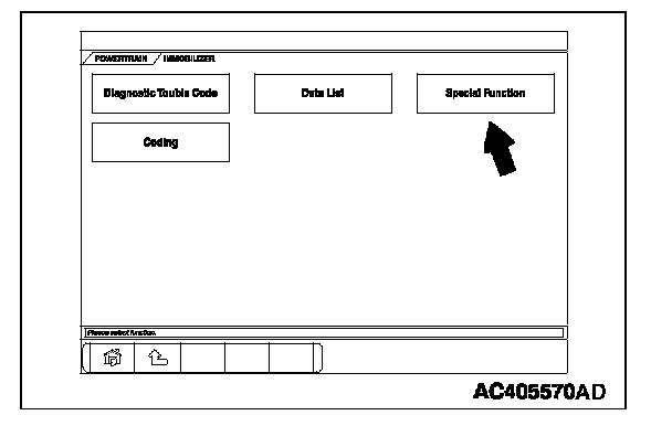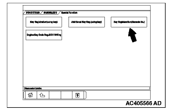 ENCRYPTED CODE REGISTRATION USING BARCODE NO.When the ignition key that starts the engine is replaced due to the replacement of the ignition key set, the ignition key cylinder, etc., the barcode No. must be used to register encrypted codes.