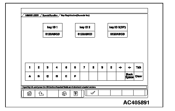 8. Enter the ID on the bar code plate which is attached to the ignition key, and press the OK button.