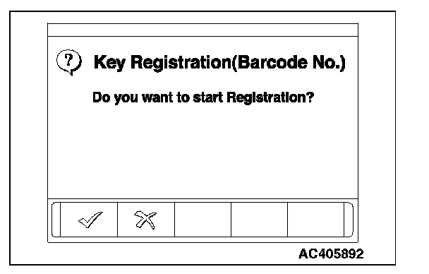 9. When the execution confirmation menu of the key registration (Barcode No.) is displayed, press the OK button.