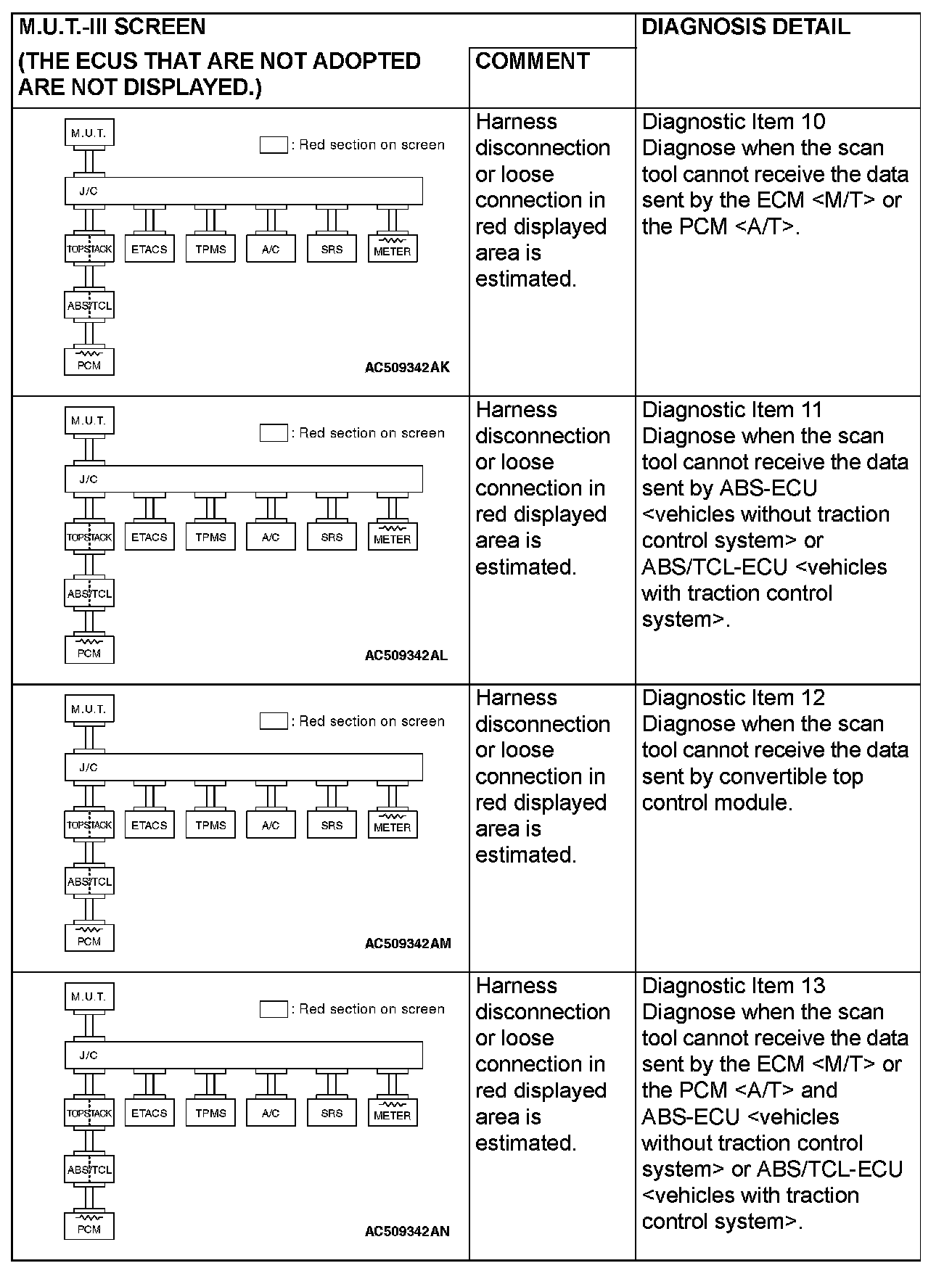 NOTE: If the screen other than above is displayed, troubles are present at two or more spots. In this case, diagnose CAN bus lines by referring to the trouble spot pinpoint procedures.