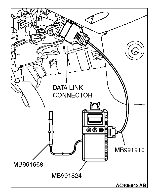 1. Connect scan tool MB991958 to the data link connector.