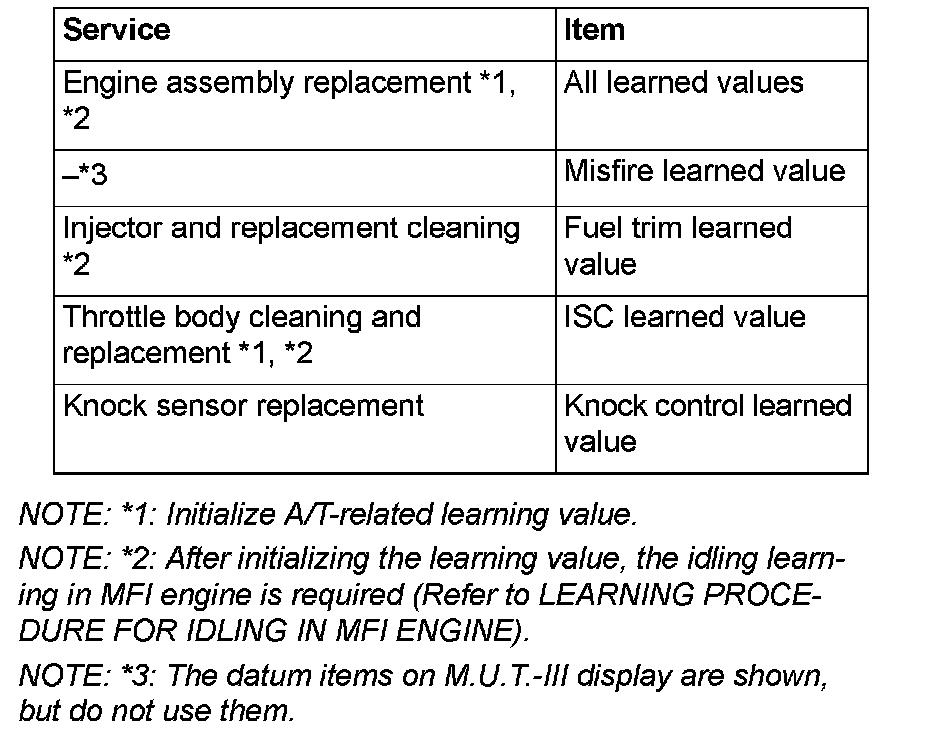 INITIALIZATION PROCEDURE FOR LEARNING VALUE IN MFI ENGINEWhen the following service is performed, initialize the learning value.