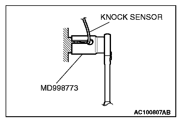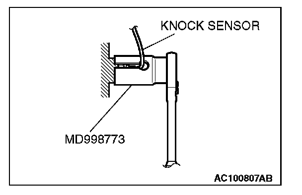 Use special tool MD998773 to tighten the knock sensor to the specified torque in the same manner as removal.