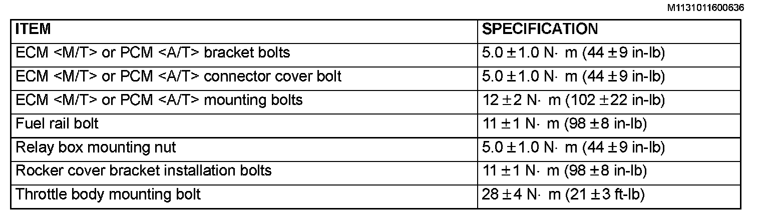 Fastener Tightening Specification: