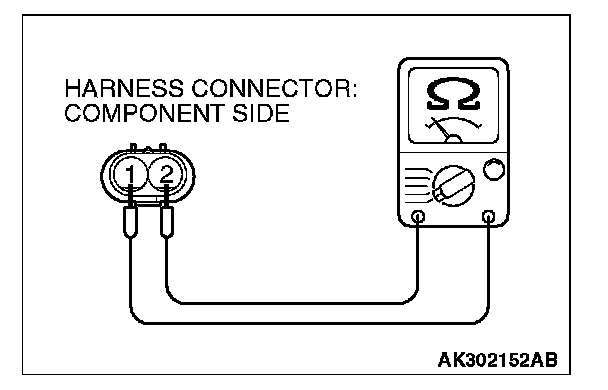 2. Measure resistance between terminal No. 1 and terminal No. 2 of the connector at the engine oil control valve side.