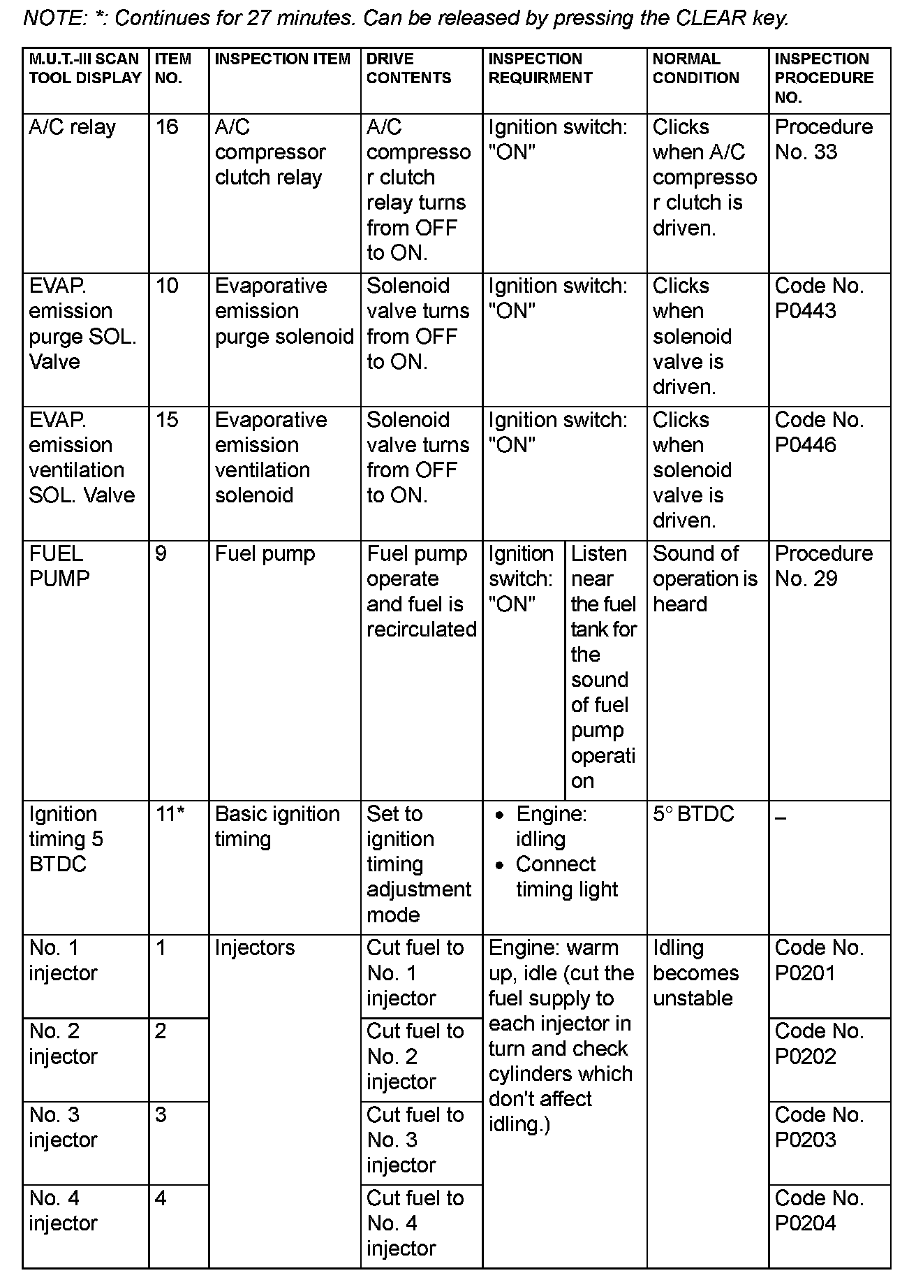 Actuator Test Reference Table Part 2: