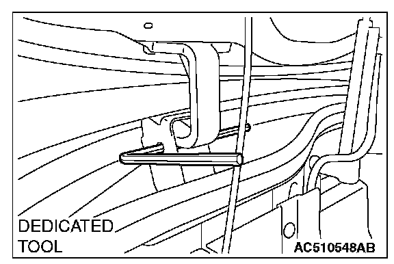 2. Raise the tonneau panel, and insert the dedicated tool into the hinge hole to hold the tonneau panel in place.