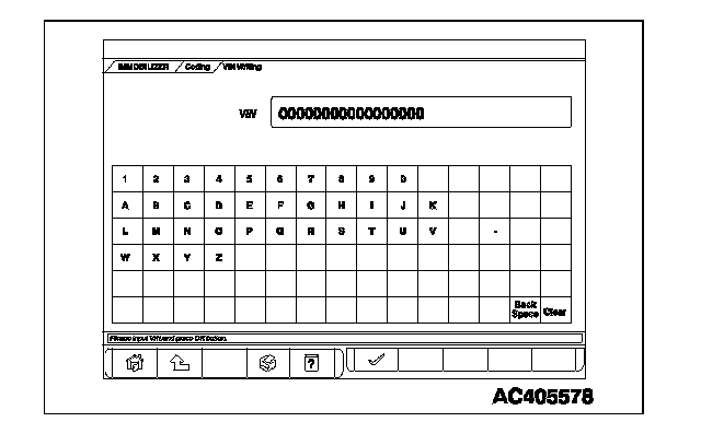 ^ Check that DTC No.P0603 (EEPROM malfunction) is not set. If DTC No.P0603 (EEPROM malfunction) is set, entered VIN cannot be stored. Therefore, carry out troubleshooting and repair the malfunction when this code is set.