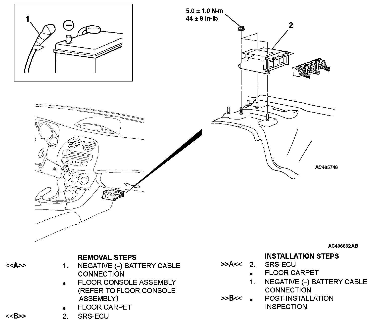Home >> Mitsubishi >> 2007 >> Eclipse L4-2.4L (4G69) >> Repair and Diagnosis >> Relays and Modules >> Relays and Modules - Restraints and Safety Systems >> Air Bag Control Module >> Service and Repair >> Removal and Installation