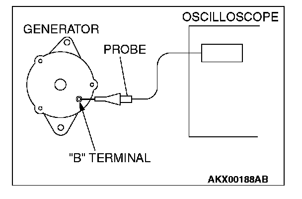 If the ripple height is abnormally high (approximately 2 V or more during idling), the wires between the generator "B" terminal and the battery have broken due to fuse blowing, etc. The generator is usually operating properly.