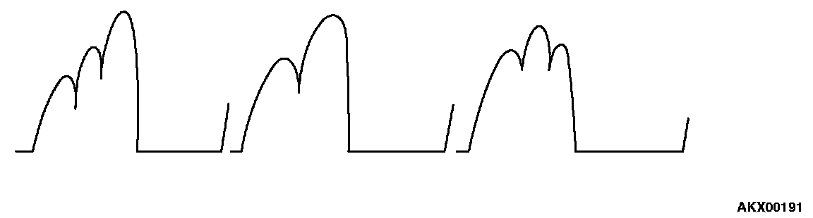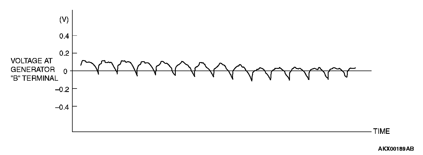 NOTE: Identification of abnormal waveforms is easier when there is a large output current (regulator is not operating). (Waveforms can be observed when the headlights are illuminated.)