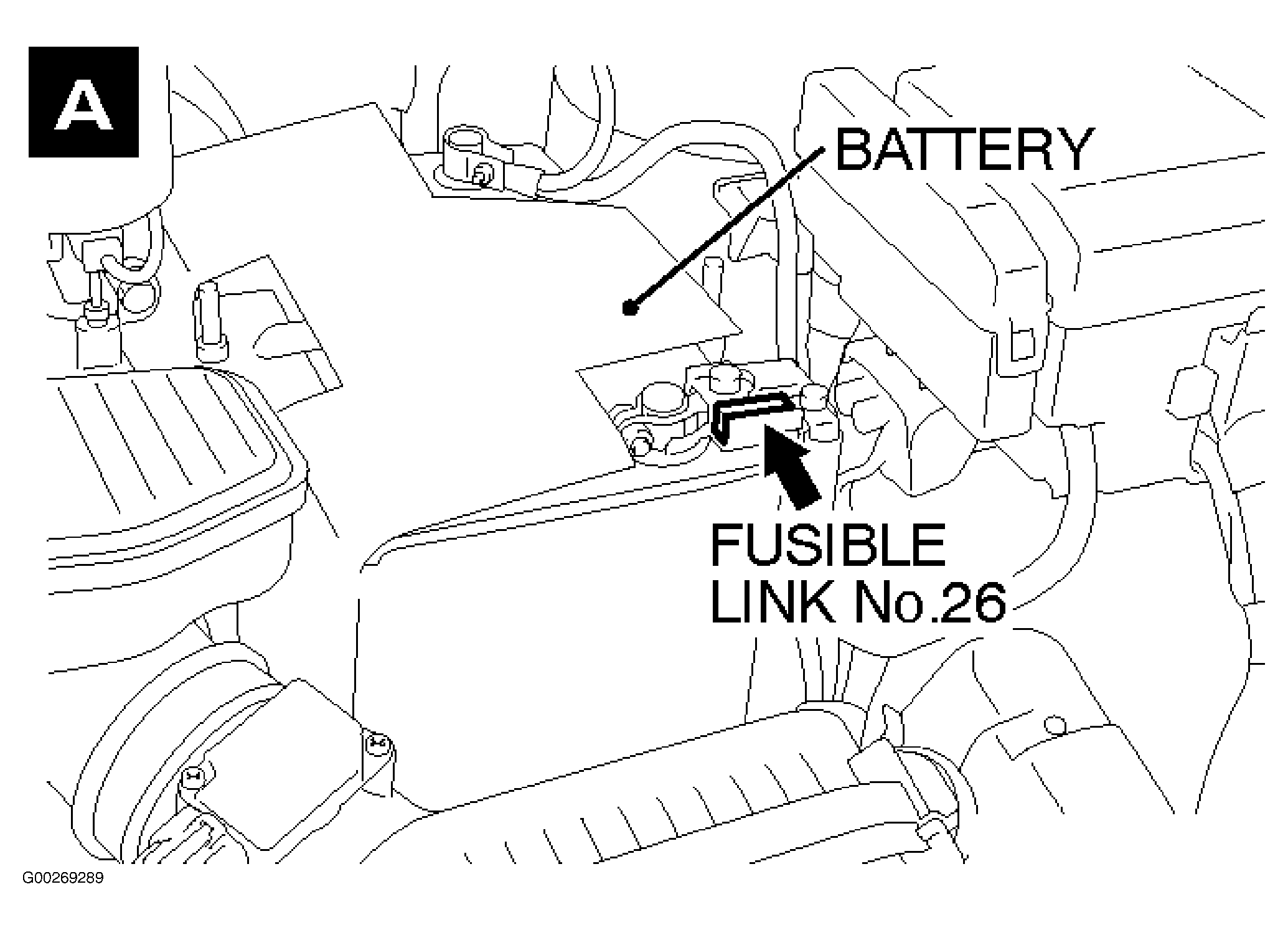 | Fusible Link No. 26 | At positive battery terminal connection. See Figure. |