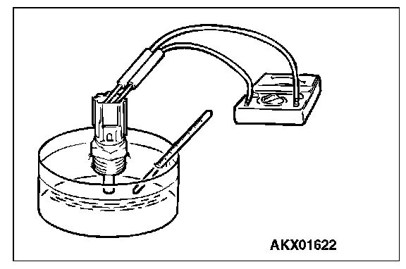 2. With the temperature sensing portion of engine coolant temperature sensor immersed in hot water, check the resistance.