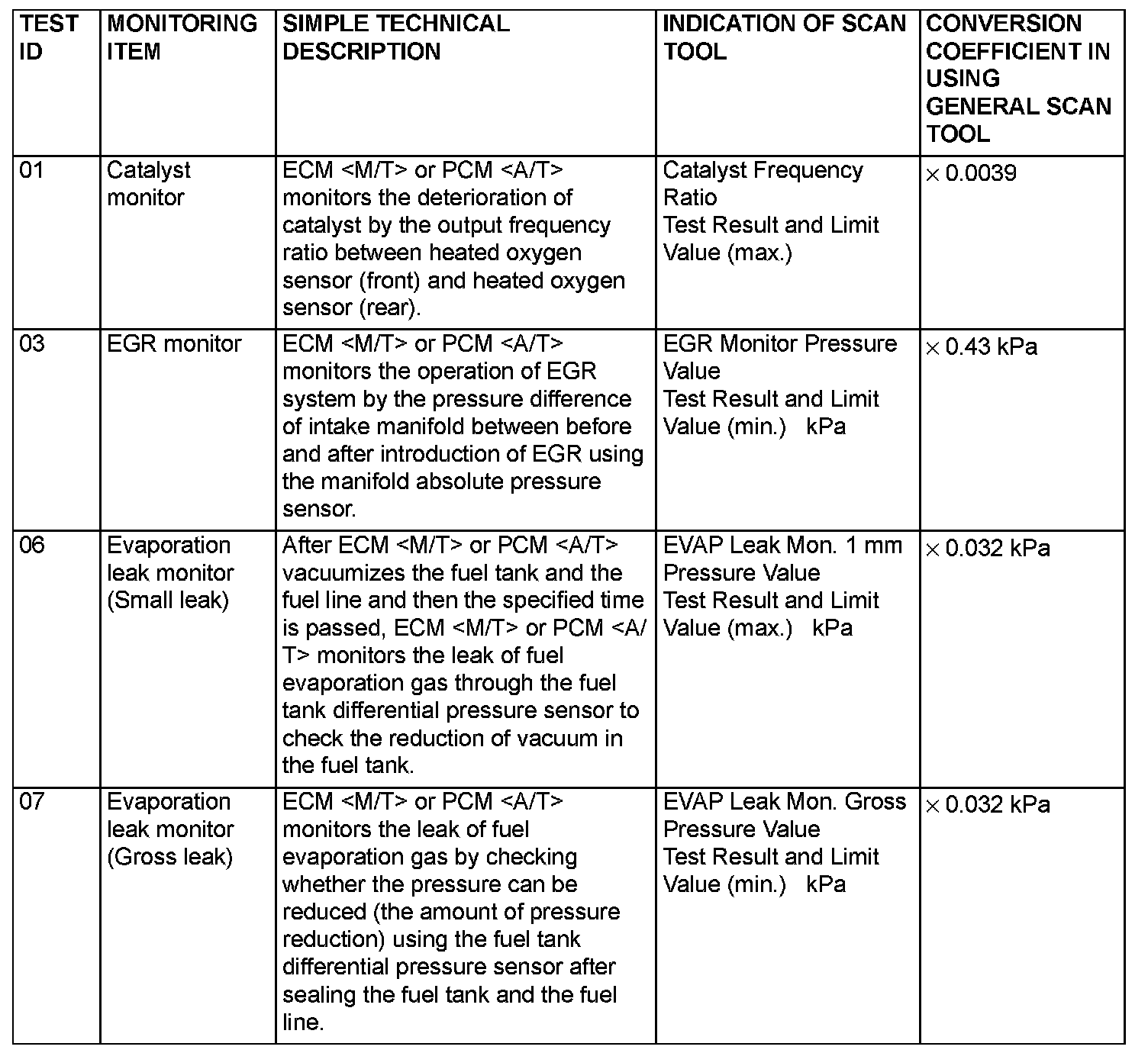 monitors can be confirmed. The value at the last monitoring is output by ECM or the PCM as a test result.