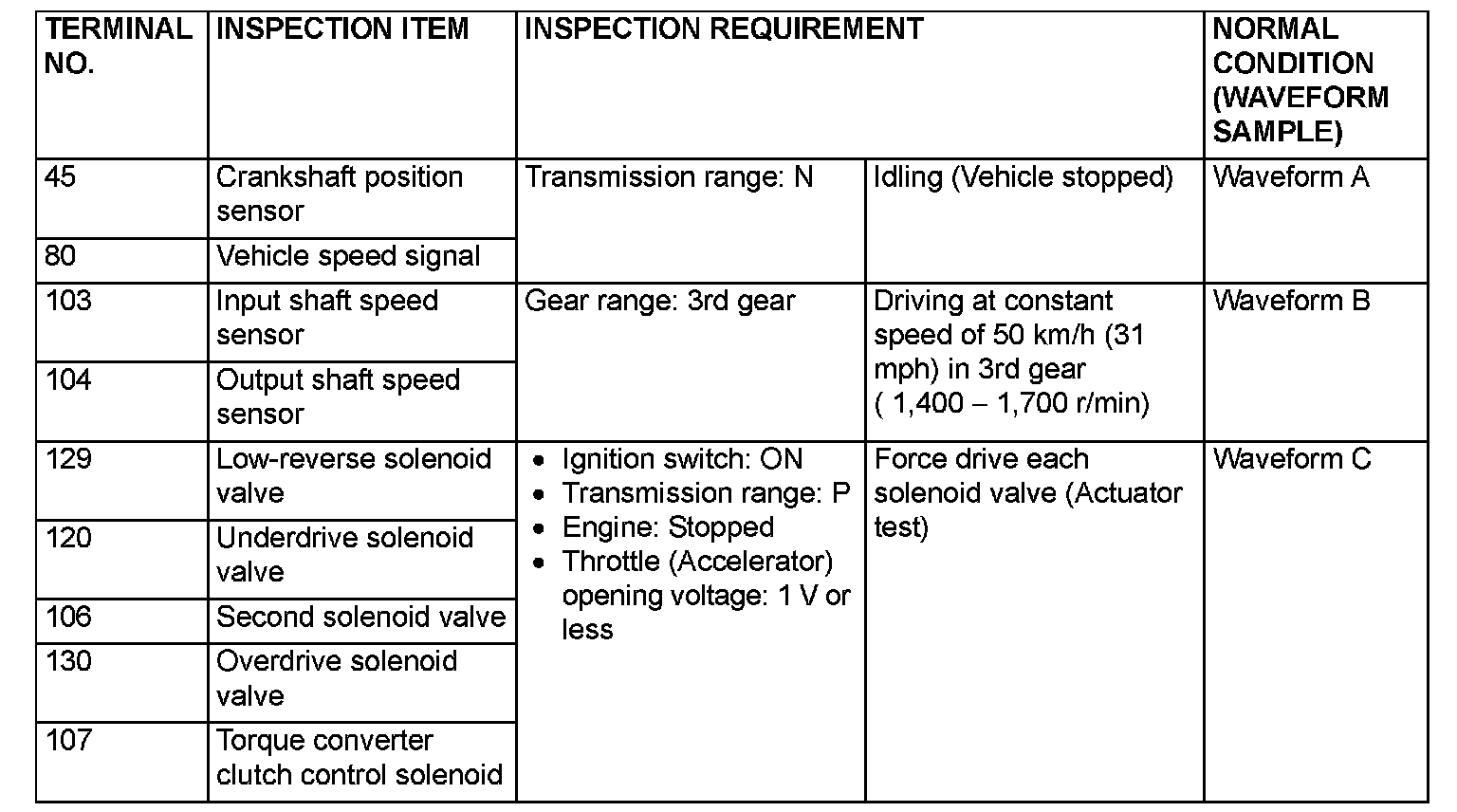 INSPECTION PROCEDURE USING AN OSCILLOSCOPE
