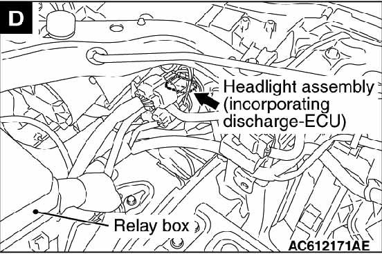 | Headlight Discharge-ECU (Left/Right) | Behind respective headlight assembly. See Figure. |