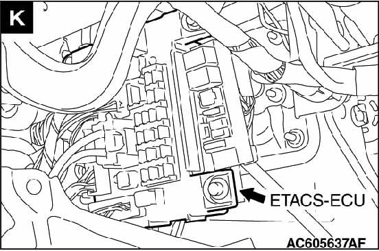 | ETACS-ECU | Behind left end of dash. See Figure. |