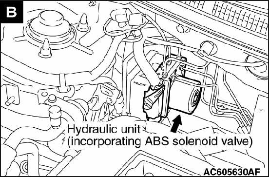 | Hydraulic Unit | Right rear of engine compartment. See Figure. |