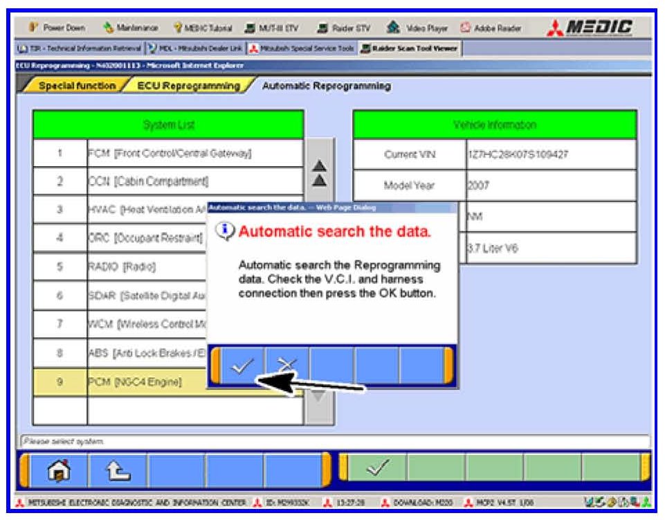 9. This window will pop up advising that the program will "Automatic search the data." Click on the check mark to continue.