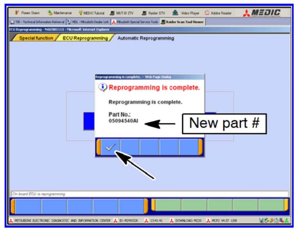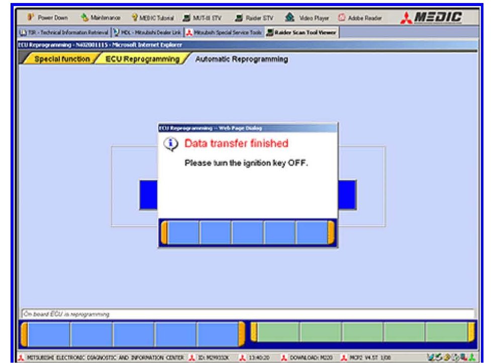 DO NOT SHUT DOWN THE RAIDER STV PROGRAM AT THIS POINT. ECU DAMAGE WILL OCCUR. FOLLOW THE MUT-III SCREEN DISPLAY MESSAGES TO RESTART THE PROGRAMMING PROCESS.