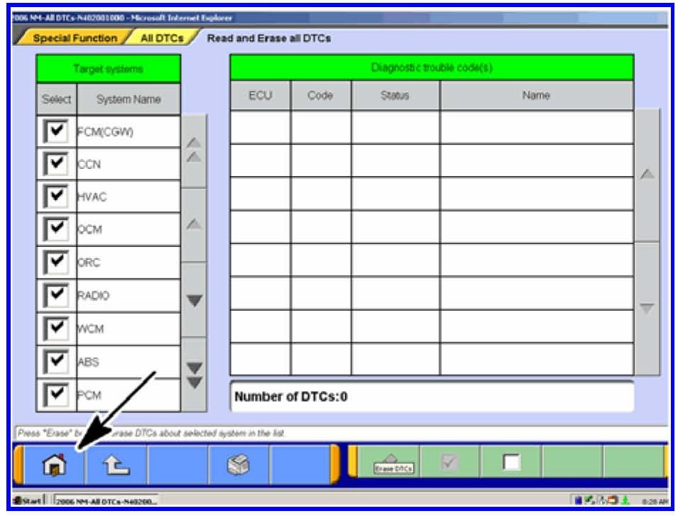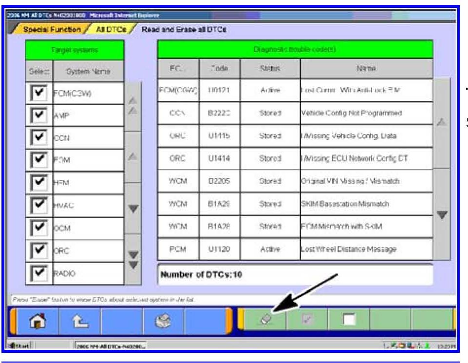 2. If DTCs are listed, click on the Erase button at the bottom of the screen.