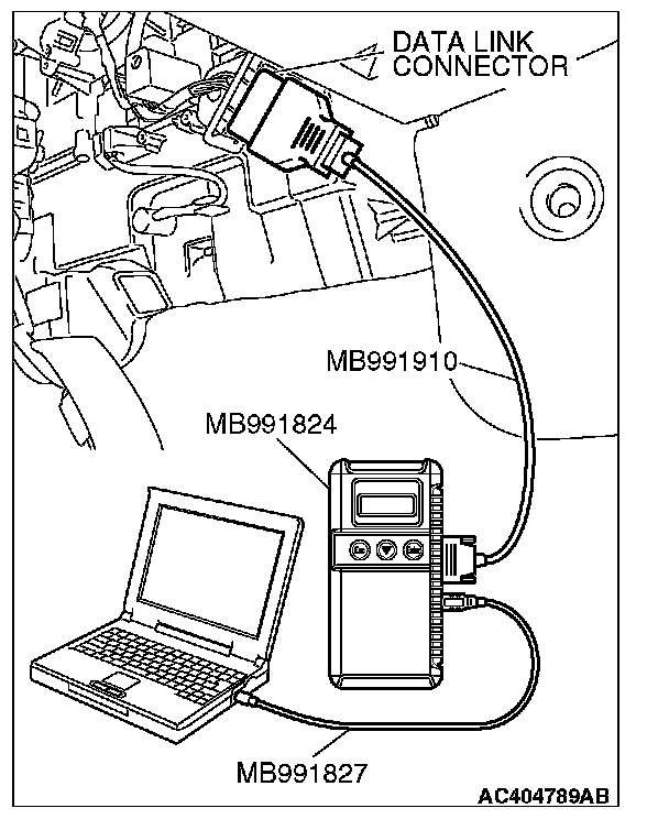 1. Connect scan tool MB991958 to the data link connector.