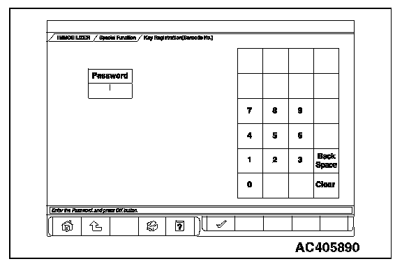 8. Enter the ID on the bar code plate which is attached to the ignition key, and press the OK button.