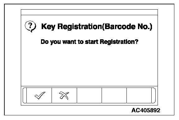 9. When the execution confirmation menu of the key registration (Barcode No.) is displayed, press the OK button.