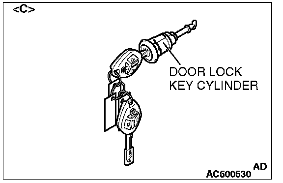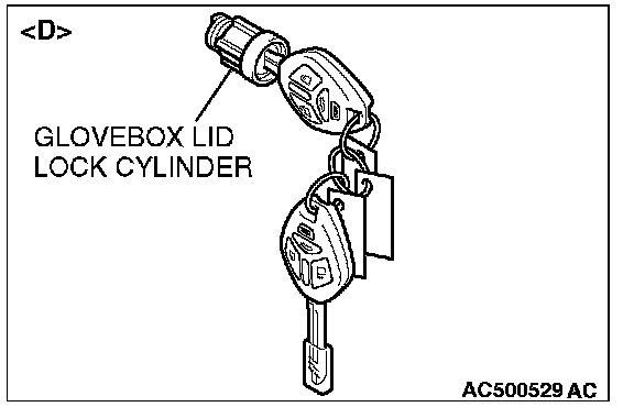 - When replacing the components by the door lock key cylinder of illustration [C] or the glove box lid lock cylinder of illustration [D], do not register the encrypted code with the bar code on the ignition key which is supplied to each lock cylinder simultaneously.