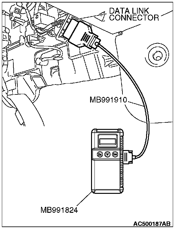 3. Connect special tool MB991824 (V.C.I.) to the data link connector.