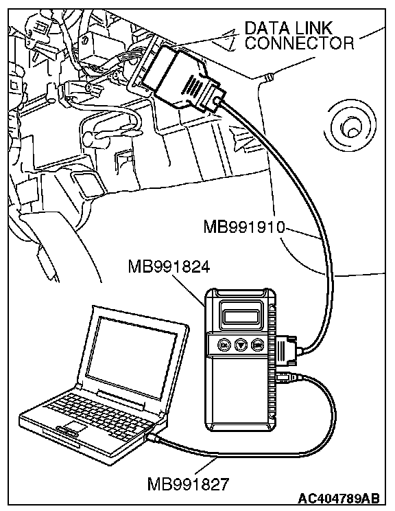 1. Connect scan tool MB991958 to the data link connector.