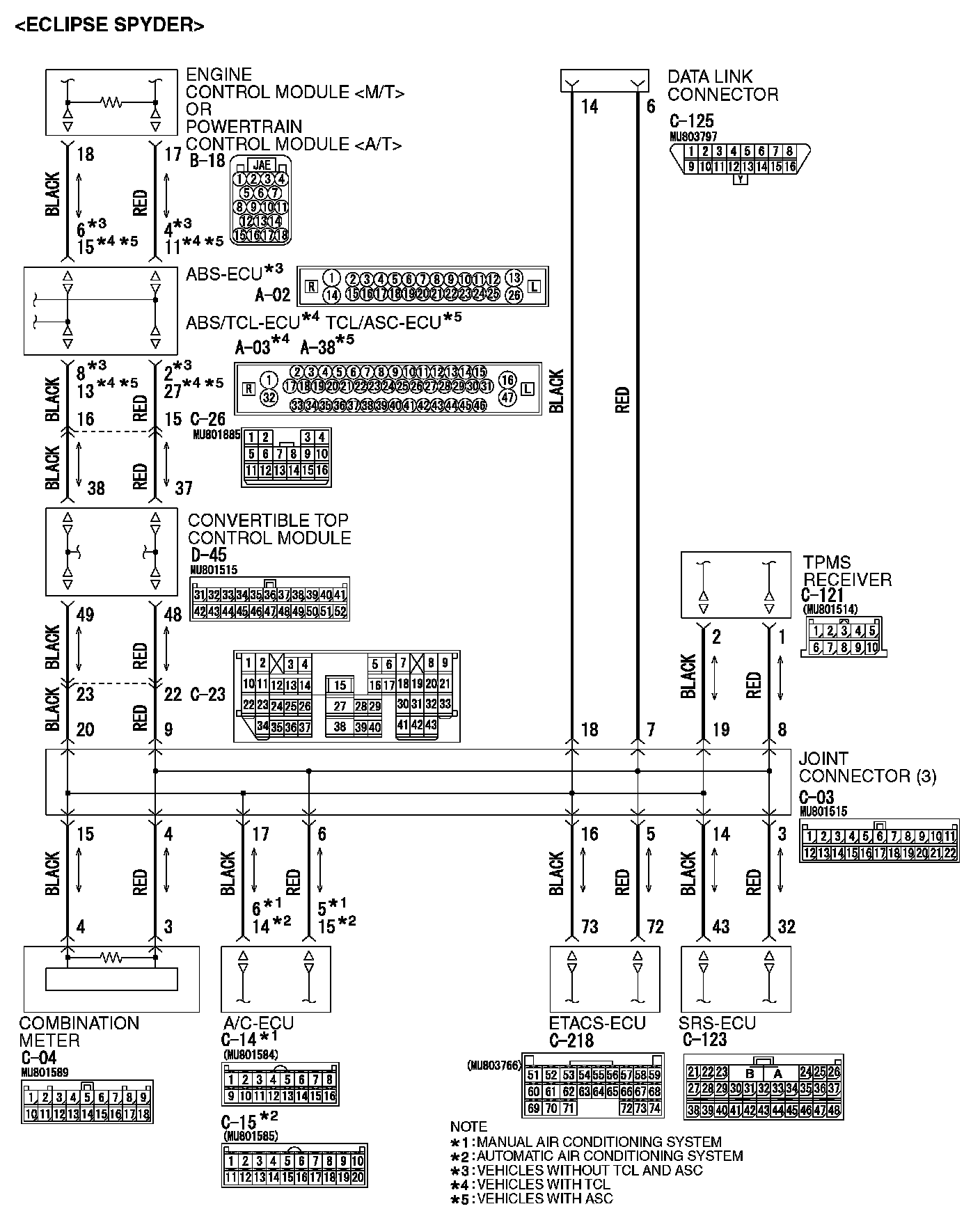 - The wiring harness may be defective (larger resistance of harness between the combination meter and the ECM [M/T] or PCM [A/T])